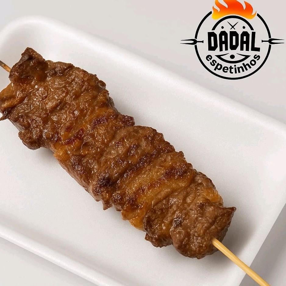 Delicioso espetinho de carne suculenta, grelhada à perfeição, acompanhado de farofa crocante.