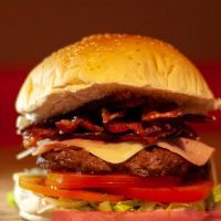 Pão bola, carne de hambúrguer, calabresa, bacon em tiras, presunto, queijo, salada e batata palha. (Imagem ilustrativa)