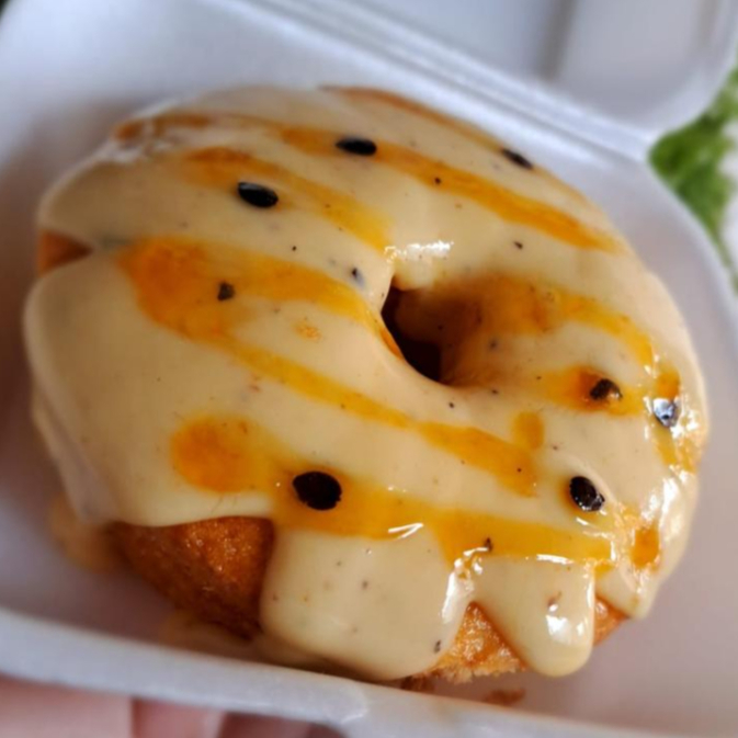 Delicioso bolo caserinho de 12cm com cobertura de maracujá finalizado com geleia de maracujá