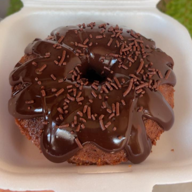 Delicioso bolo caserinho de 12cm com cobertura de chocolate finalizado com granulado de chocolate