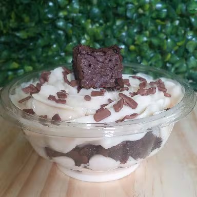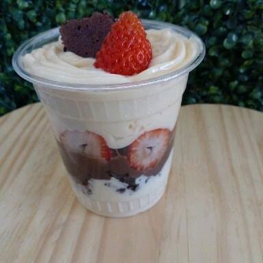 Copo de 400ml, creme bem airado de Ninho, recheio de chocolate,Brownie bem molhadinho , morango fresco, finalizado com recheio de Ninho , um pedaço de brownie e um pedaço de morango.# promoção #entrega grátis # 99