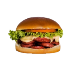 Pão, carne, calabresa, queijo, presunto, salada e batata palha