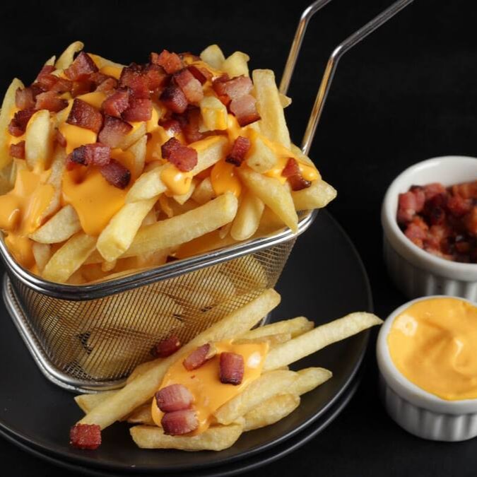 Carne, calabresa, bacon, mussarela, presunto, ovo, queijo, batata palha e salada.