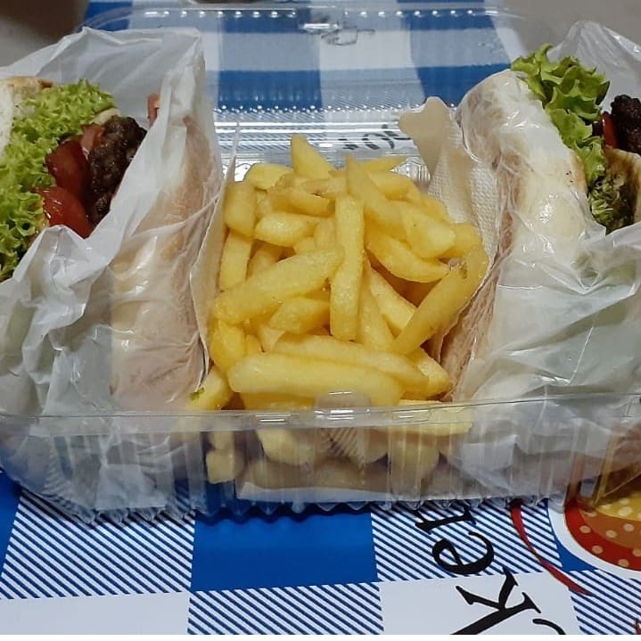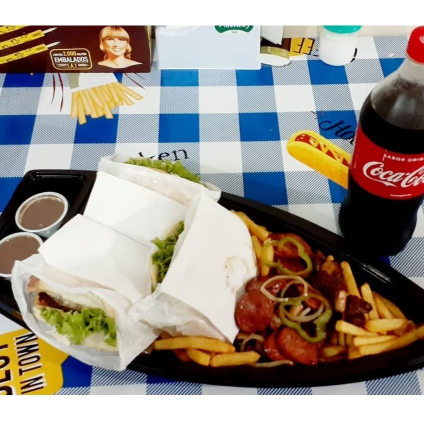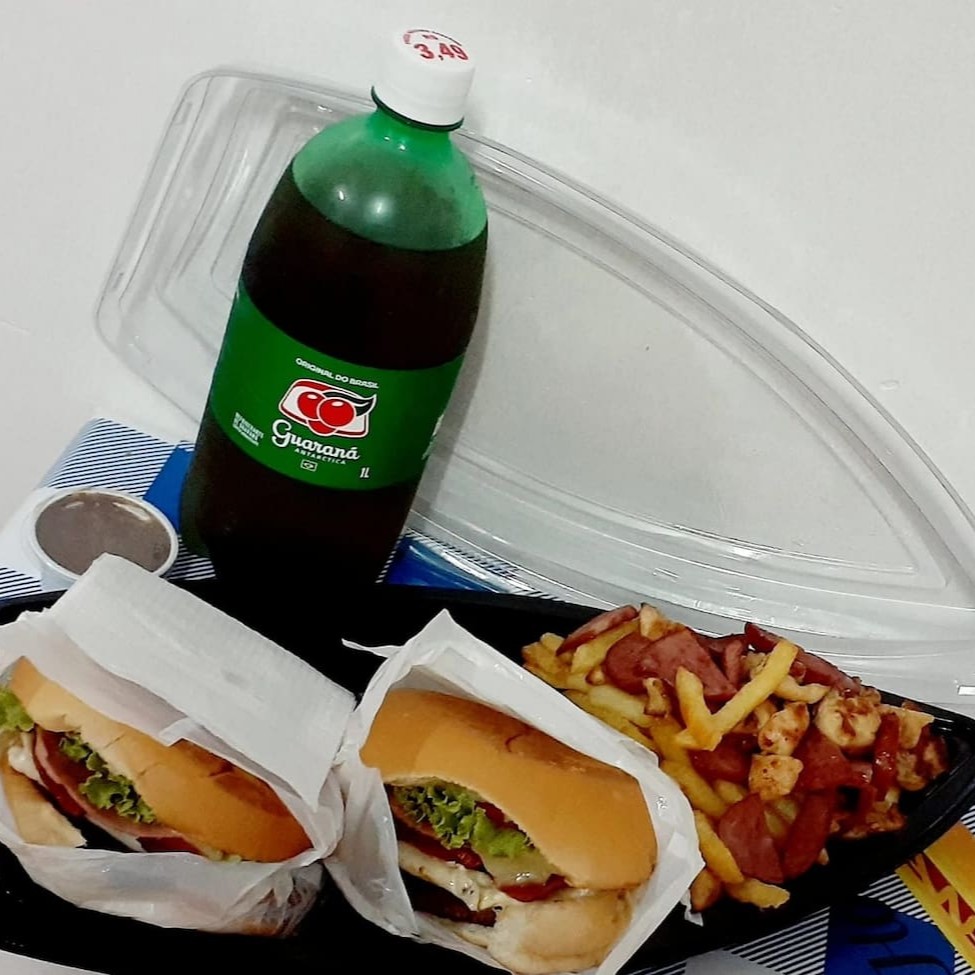02 burger especial + 01 Guaraná 1l + petiscos (frango + calabresa) + batata frita + 02 chocolates