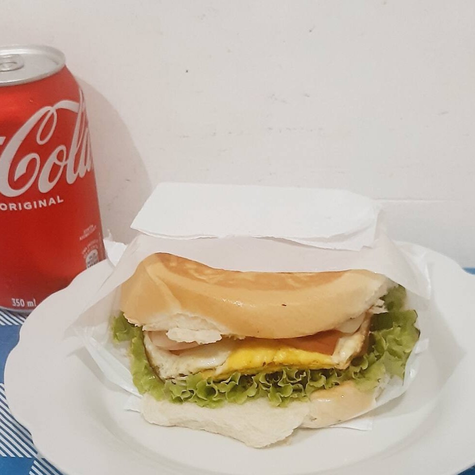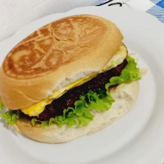 Pão bola, carne (70g), ovo e salada (alface, pepino e tomate)