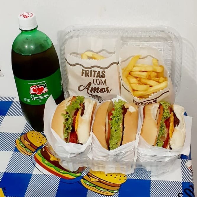 03 burger clássico + 01 Guaraná 1l + batata frita