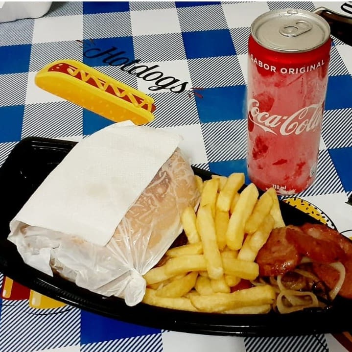 01 burger especial + 01 coca lata 310ml + calabresa + batata frita + 01 sobremesa
