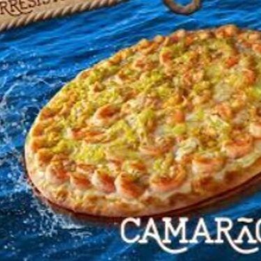 Camarão rosa, muçarela, cebola roxa, tomate, azeitona, orégano e molho especial de tomate com ervas finas. (10 fatias)
