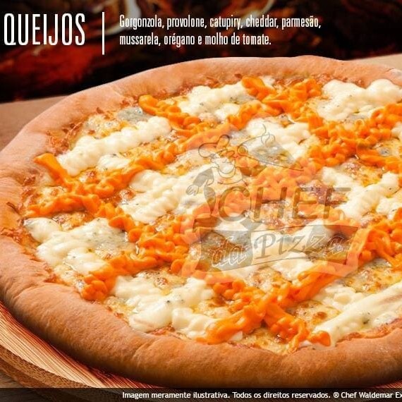 Queijo muçarela, cheddar, catupiry, tomate, orégano, molho especial de tomate com ervas finas. (12 fatias)