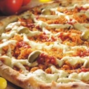 Molho de tomate,queijovmussarela, frango, catupiry, cebola, tomate, azeitona e orégano.