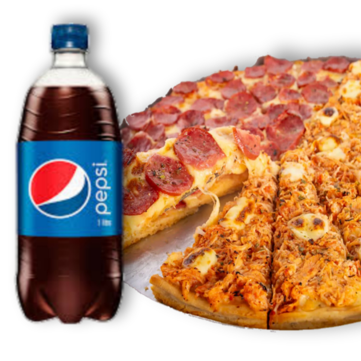 1 pizza gg de calabresa e quatro queijos + pepsi 1L