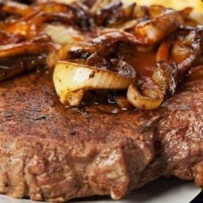 Alcatra fatiada 350g,batata frita,farofa,salada e molho rosê