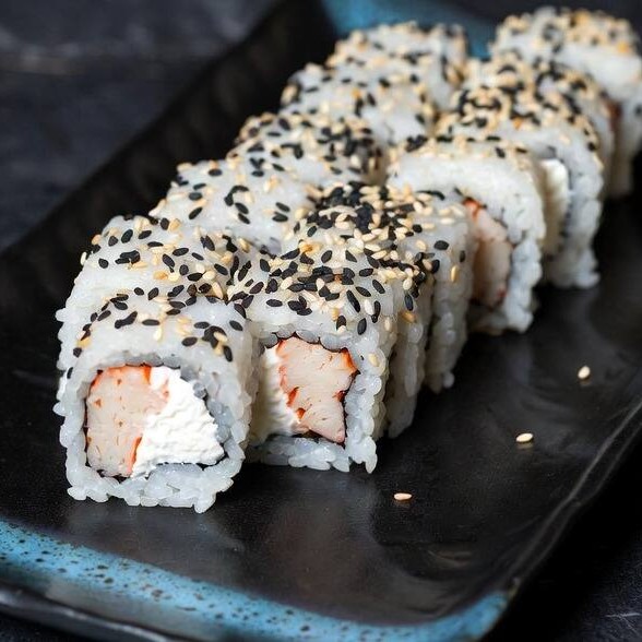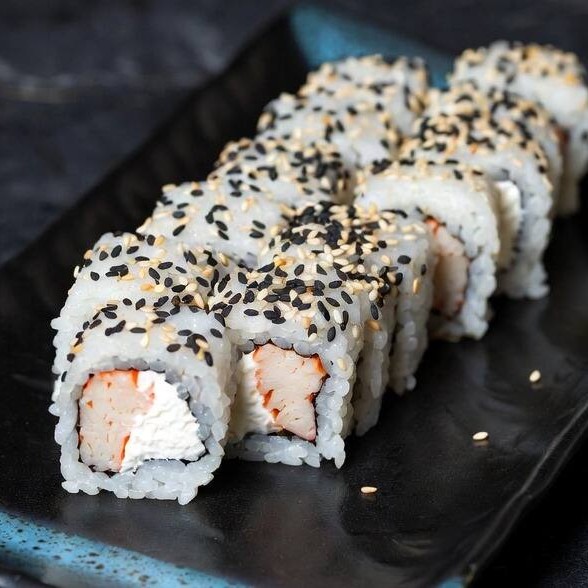Alga nori, arroz, gergelim torrado, kani e cream cheese