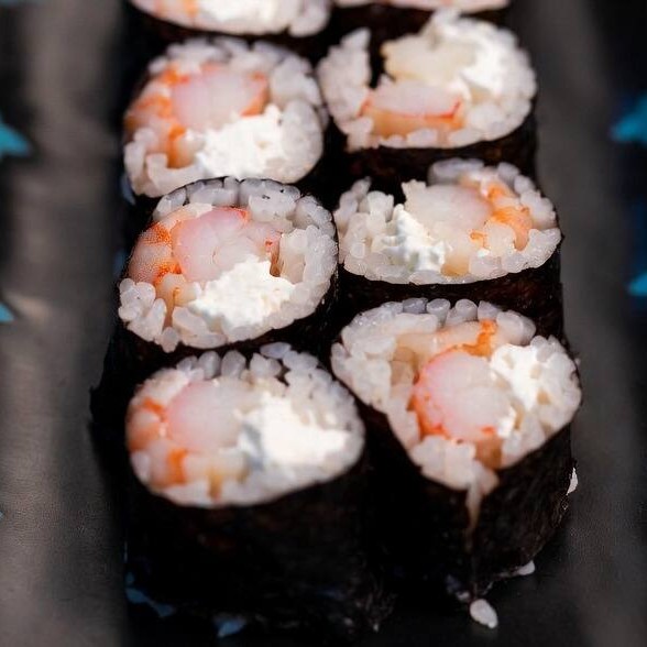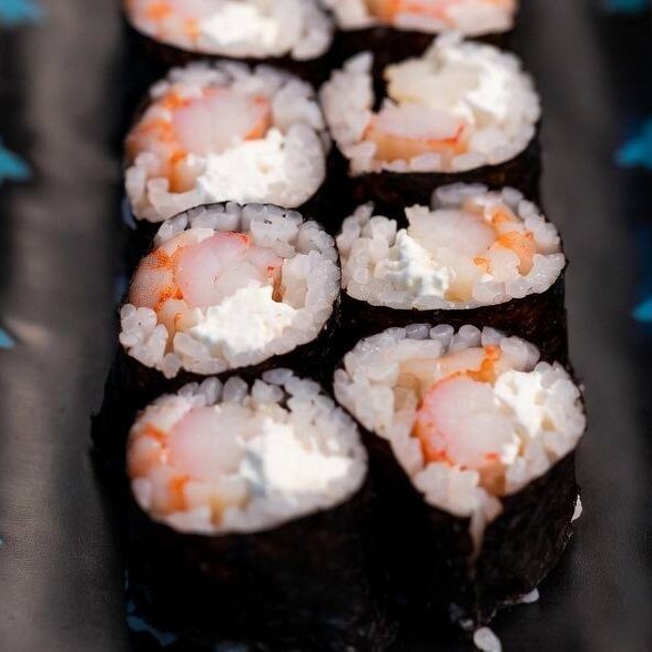Alga nori, arroz, camarão e cream cheese