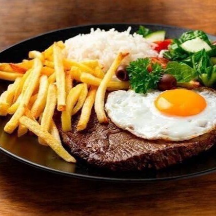 Acompanha arroz, e batata palha.