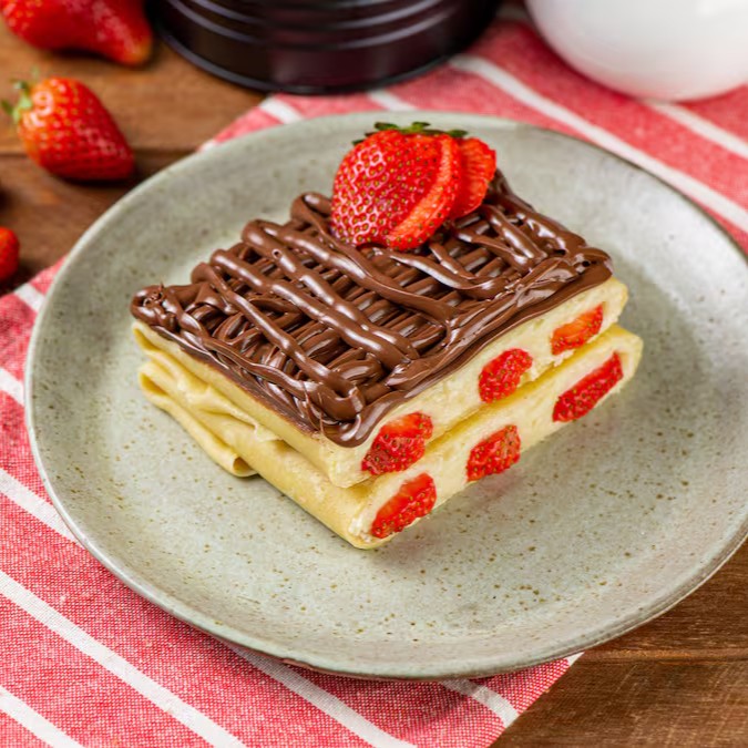 O brigadeiro branco, com sua textura cremosa e sabor indulgente, é o protagonista dessa delícia. Para adicionar um toque de frescor, acrescentamos morangos frescos, que complementam perfeitamente o doce do brigadeiro. E para deixar tudo ainda mais irresistível, uma generosa camada de Nutella, o creme de avelã e chocolate mais amado do mundo. Cada mordida é uma experiência dos deuses, um festival de prazer para o seu paladar. Então, não perca tempo! Peça agora mesmo a sua Panqueca Gourmet de Brigadeiro Branco, Morango e Nutella e renda-se a essa combinação divina!