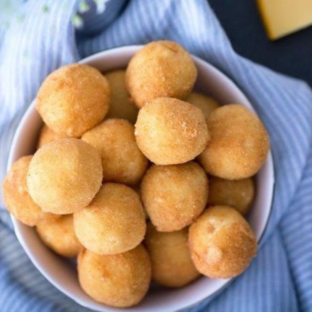 Deliciosas bolinhas de queijo, feitas com queijo cremoso e envoltas em uma massa crocante. Um petisco irresistível para qualquer hora do Dia.