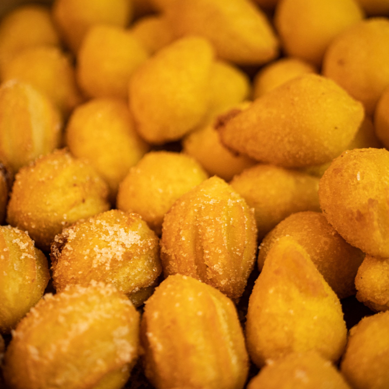 Salgadinhos fritos em formato de bolinha e recheados com queijo.