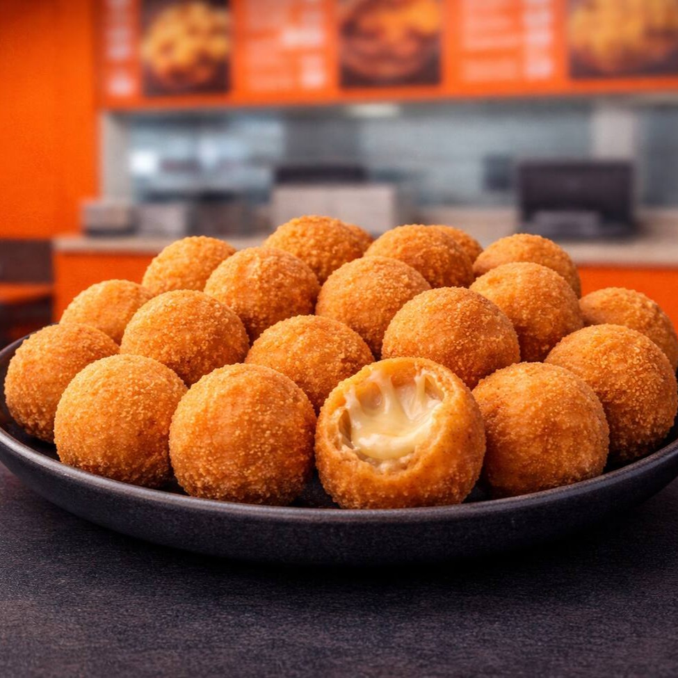 Deliciosas bolinhas de queijo, feitas com queijo cremoso e envoltas em uma massa crocante. Um petisco irresistível para qualquer hora do Dia.