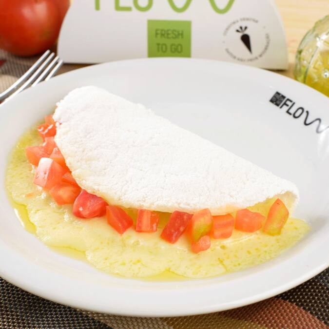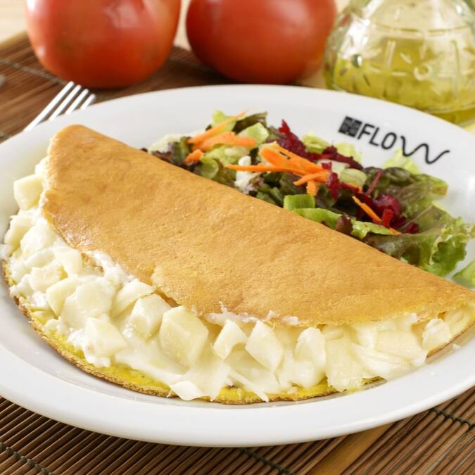 Delicioso omelete recheado de muçarela e tomate fresquinho cortado em cubos. Acompanha nossa salada do Dia feita com ingredientes frescos e selecionados.