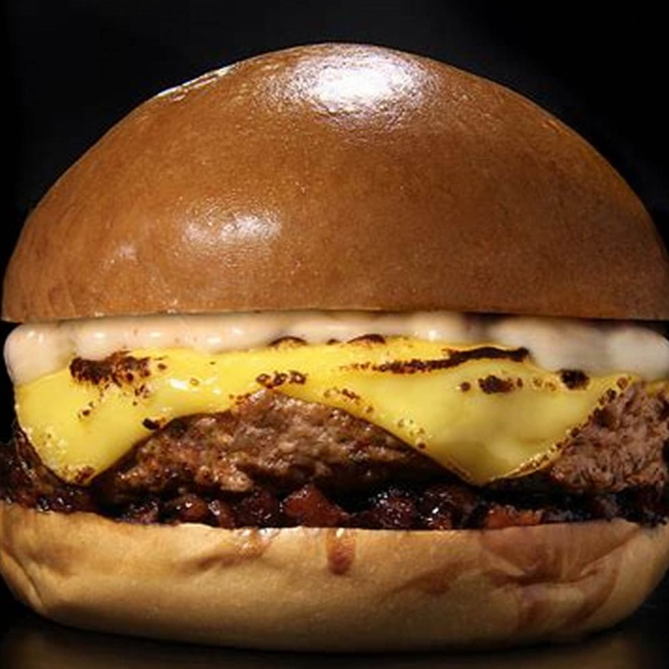 carne 160 g, queijo prato, bacon, salada e maionese da casa.