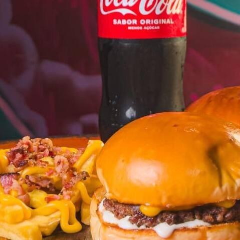 O nosso Combo Casal vem 2 Simples+ Batata M com cheddar e bacon+ Coca 1 litro