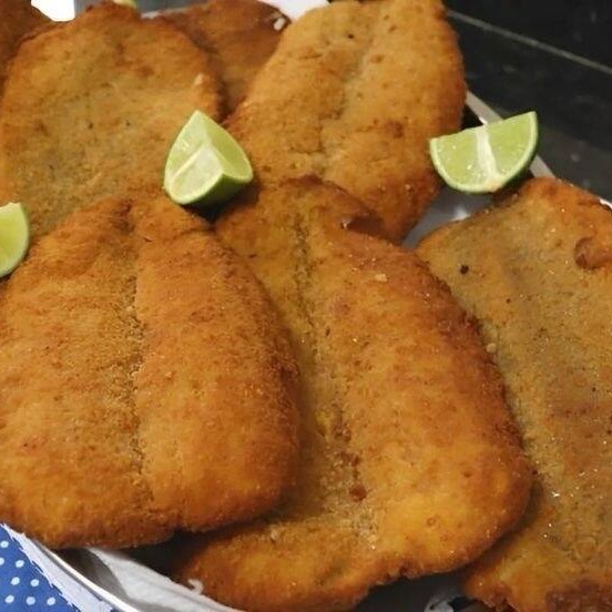 Peixe Frito saboroso servido com arroz branco, feijão, macarrão, salada de maionese, farofa. (Imagem ilustrativa)