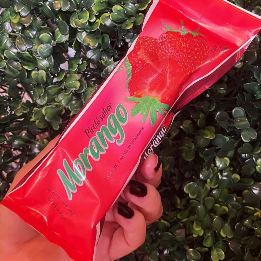 Delicioso picolé base leite sabor morango, cremoso e irresistível.