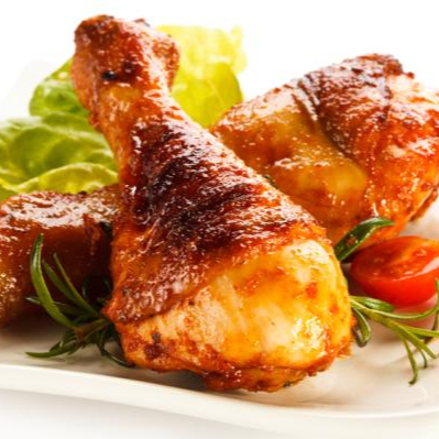 Frango assado de forno. Duas opções de acompanhamento, escolha a seguir.