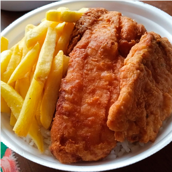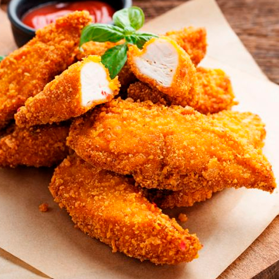 Filezinho de frango empanado, perfeito para uma refeição leve e nutritiva. Duas opções de acompanhamento, escolha a seguir.