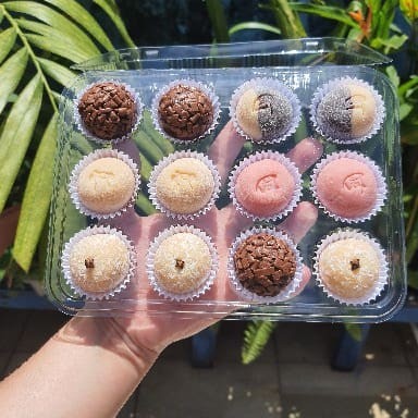 12 docinhos 18g. Brigadeiro 50% Cacau, Ninho, Casadinho, Beijinho (Coco), Nesquik. Escolha até 4 sabores.Consultar sabores disponíveis pelo chat.