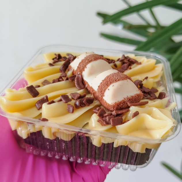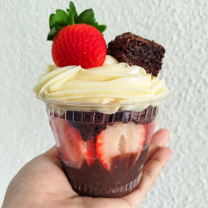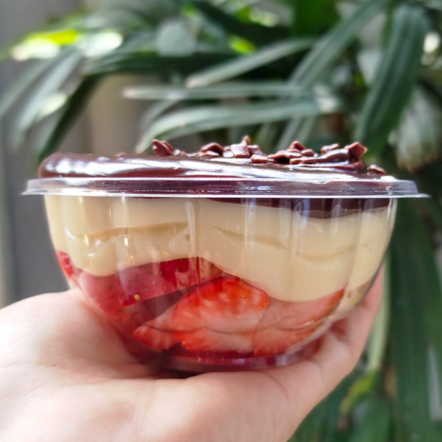 Tamanho 150ml. Saboroso, macio e geladinho, acompanhado com uma calda brilhante.