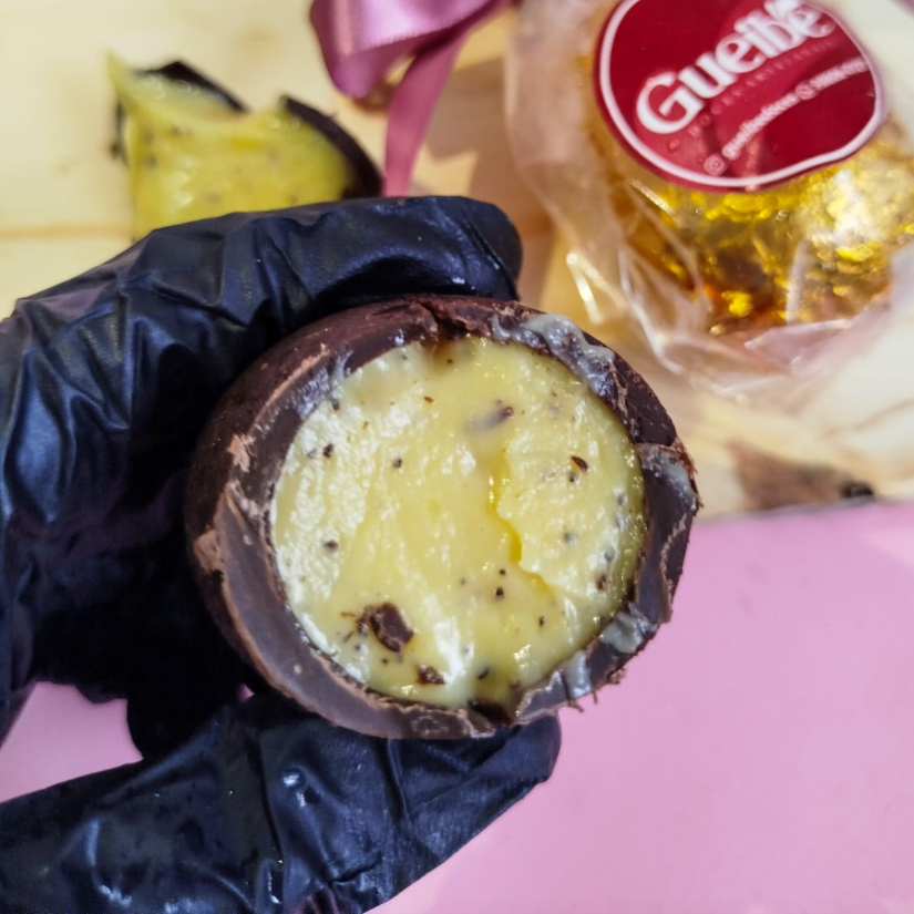 Mini ovo de 50g com duas bandas recheadas com Maracujá.