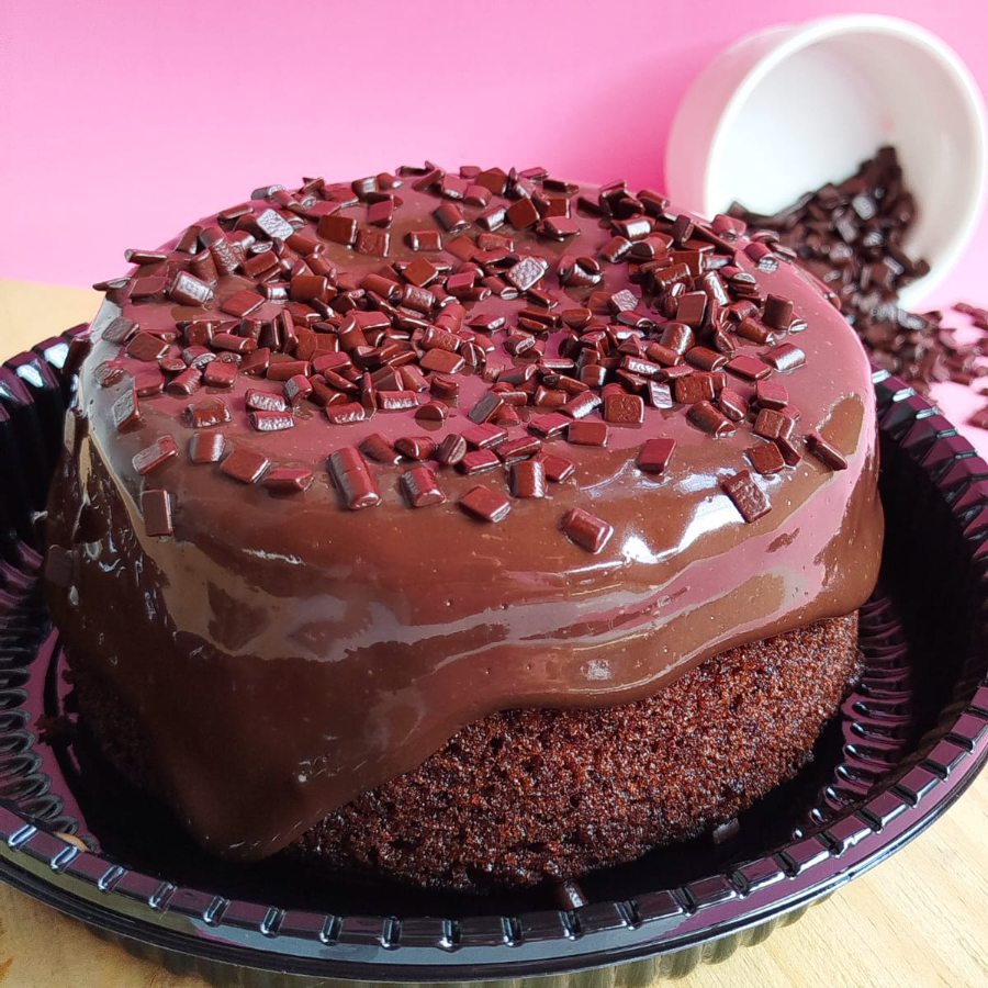 Tamanho 13cm. Massa de chocolate 50% cacau, com recheio de chocolate gourmet cremoso. Rendimento 5 pedaços