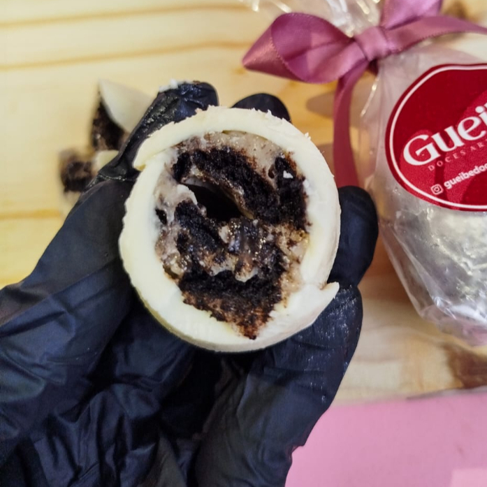 Mini ovo de 50g com dois bandas recheadas com Oreo
