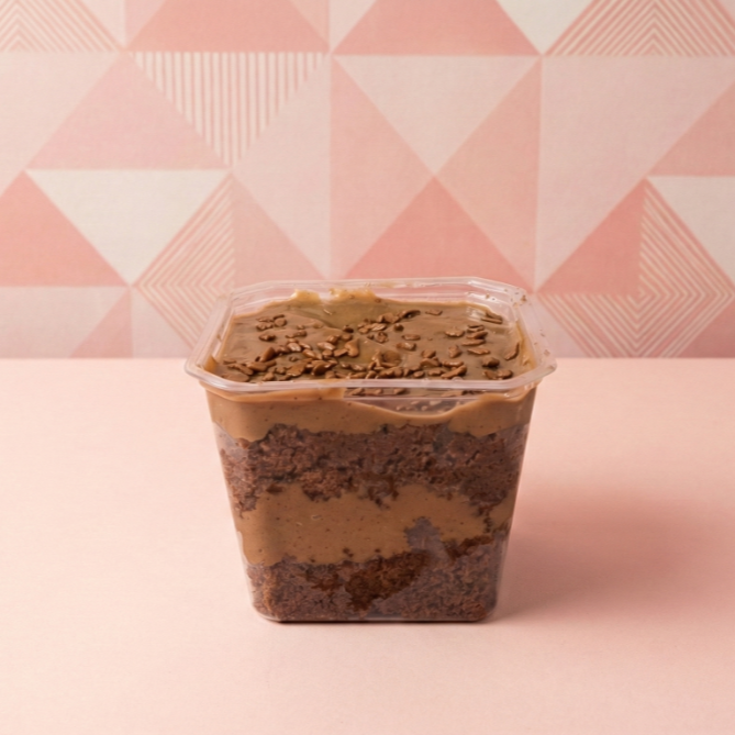 Uma explosão de sabores em cada colherada. Intercalamos pedaços do nosso brownie artesanal (casquinha crocante e interior macio) com um creme de chocolate suave e pedaços suculentos de morango. Para finalizar, uma cobertura generosa e um morango inteiro no topo.