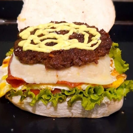 (Pão Bola, Carne, Ovo, Calabresa, Queijo, Salada e Cebola Chapeada)