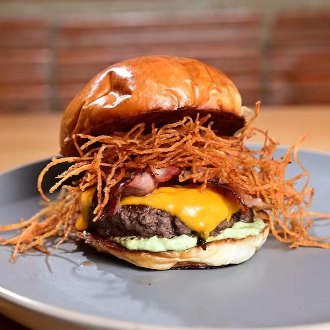 Blend 150g, cheddar, bacon, batata palha caseira, molho da casa. Crocante e viciante — o preferido de quem busca textura e sabor.