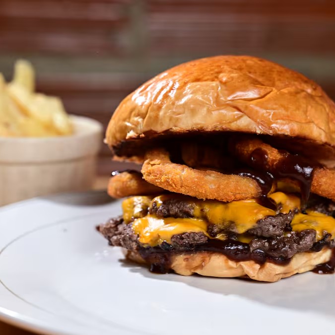 2 smash 80g, cheddar duplo, bacon, onion rings, molho barbecue artesanal. Defumado e encorpado — ideal pra quem gosta de hambúrguer de respeito.