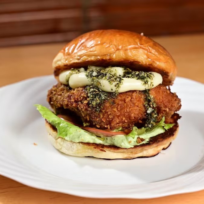 Sobrecoxa empanada crocante, Catupiry cremoso, tomate, alface, molho de ervas. Suculento, crocante e cremoso — o frango do Juca é puro prazer.