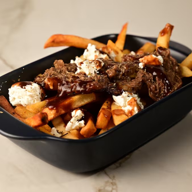 Batata crocante carregada com costela desfiada suculenta no barbecue + toque cremoso de sour cream por cima. Um prato robusto, compartilhável e viciante. batata 250g, costela com barbecue 100g, sour cream 50g.