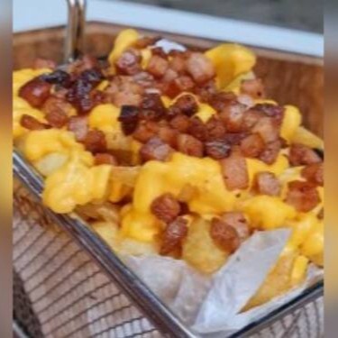 Batata frita, queijo cheddar, bacon.
