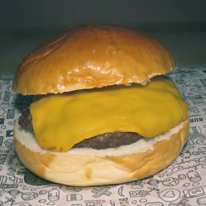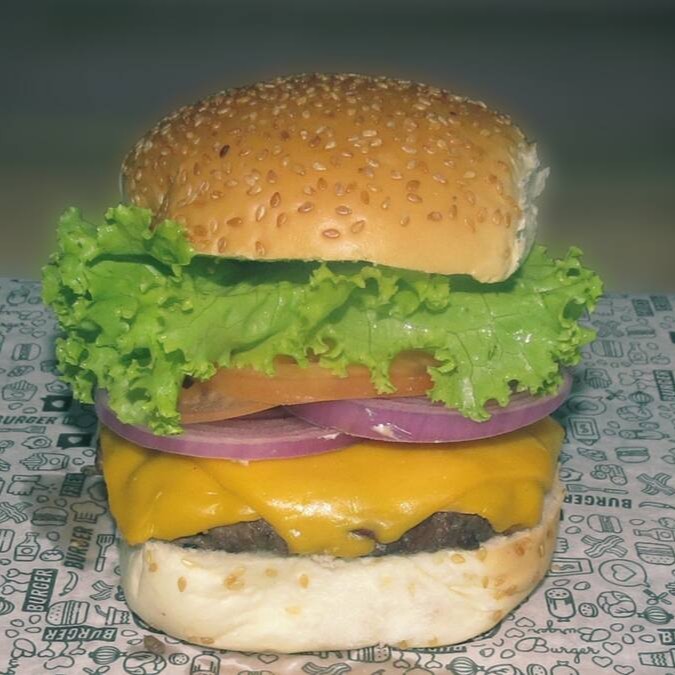 Pão amanteigado, carne de 140g, queijo cheddar ou mussarela.