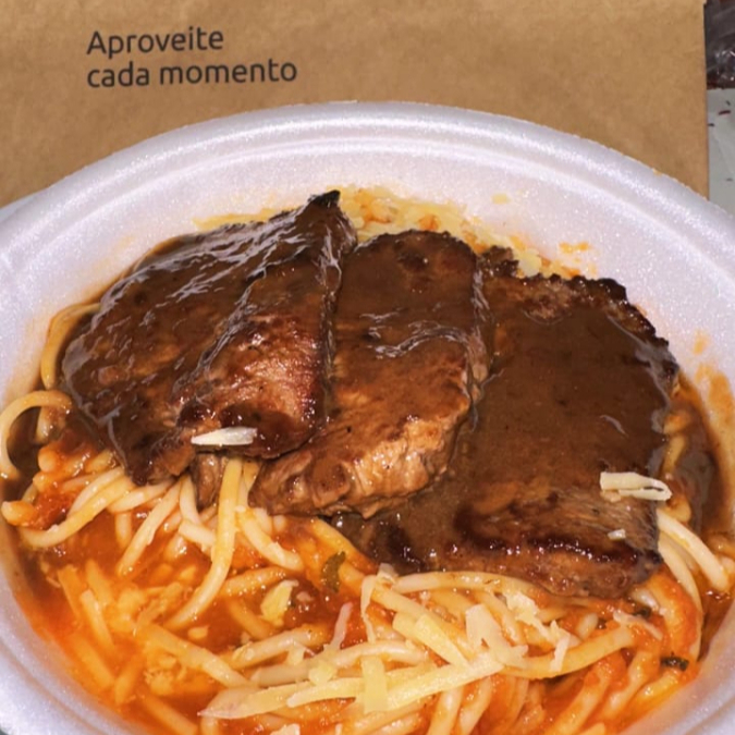 Delicioso Filé grelhado (180g) acompanhado de massa e molho de sua preferência