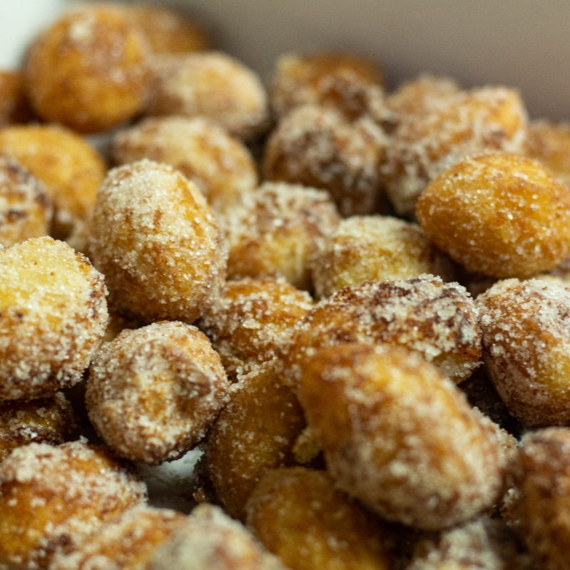 50 unidades de mini coxinha de frango crocante e frita na hora + 50 unidades de mini churros recheados de brigadeiros e empanados no açúcar. ( 100unds)