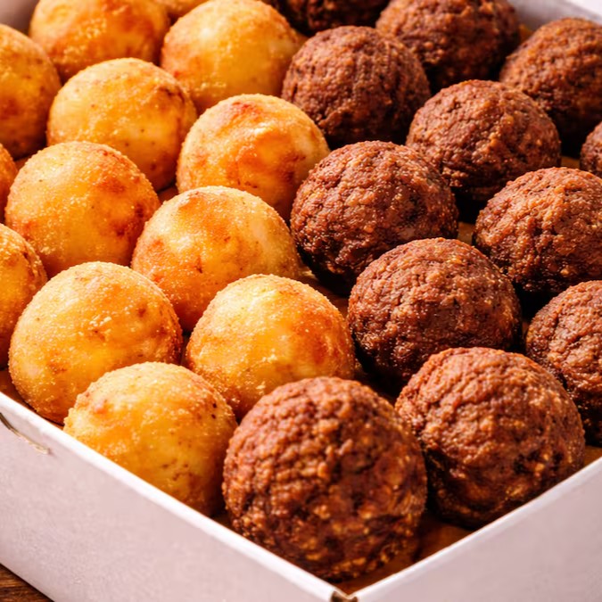 Deliciosas bolinhas de queijo mussarela com 25 unidades.