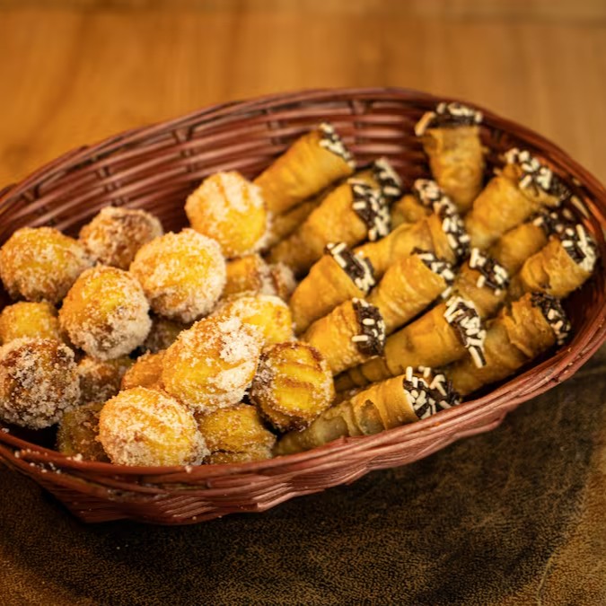 Massa adocicada com recheio de brigadeiro este é o nosso churros uma combinação perfeita empanados no açúcar.