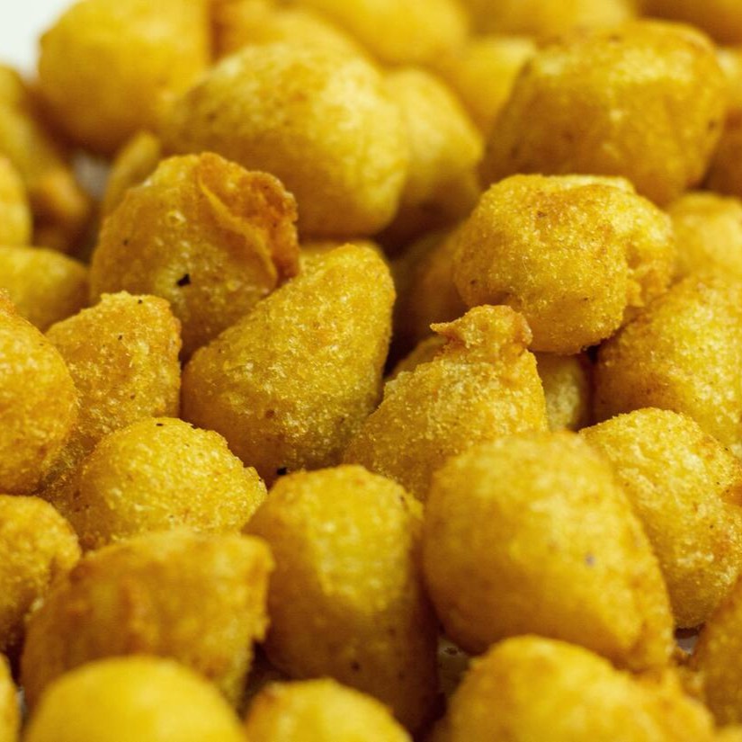 25 unidades de bolinhas de queijo com presunto fritas na hora.