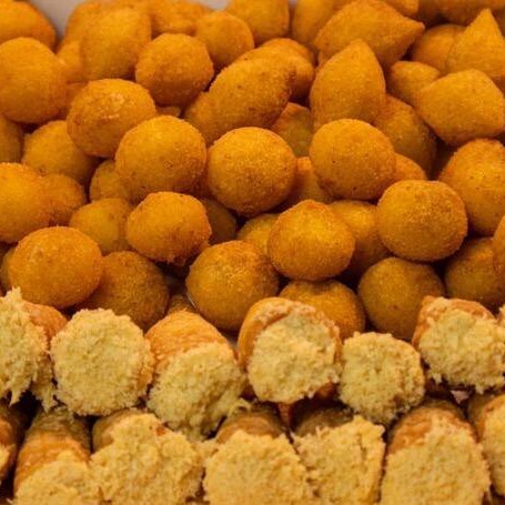 50 unidades de mini coxinha de frango crocante e super temperadinha + 50 unds de bolinho de queijo