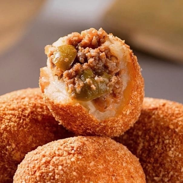 Novo sabor que dá água na boca os nossos bolinhos de carne moída super temperados fritos na hora com uma massa sequinha com 25 unidades.